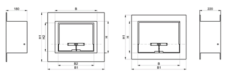 В1= В +90 мм В2 = В – 30мм Н1 = Н + 60мм