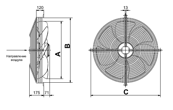 Осевые вентиляторы с защитой решеткой